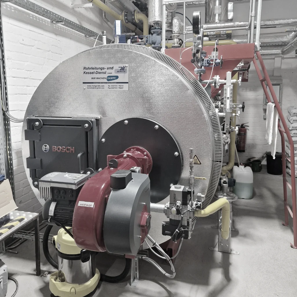 Darüber hinaus optimieren wir vorhandene Platzverhältnisse, um Ihre Anlagen perfekt in Ihre Betriebsumgebung zu integrieren. Von Großraumwasserkesseln über Schnelldampferzeuger bis hin zu Elektrodampferzeugern bieten wir eine breite Palette von Lösungen in Zusammenarbeit mit renommierten Partnern wie Bosch und Jumag.
